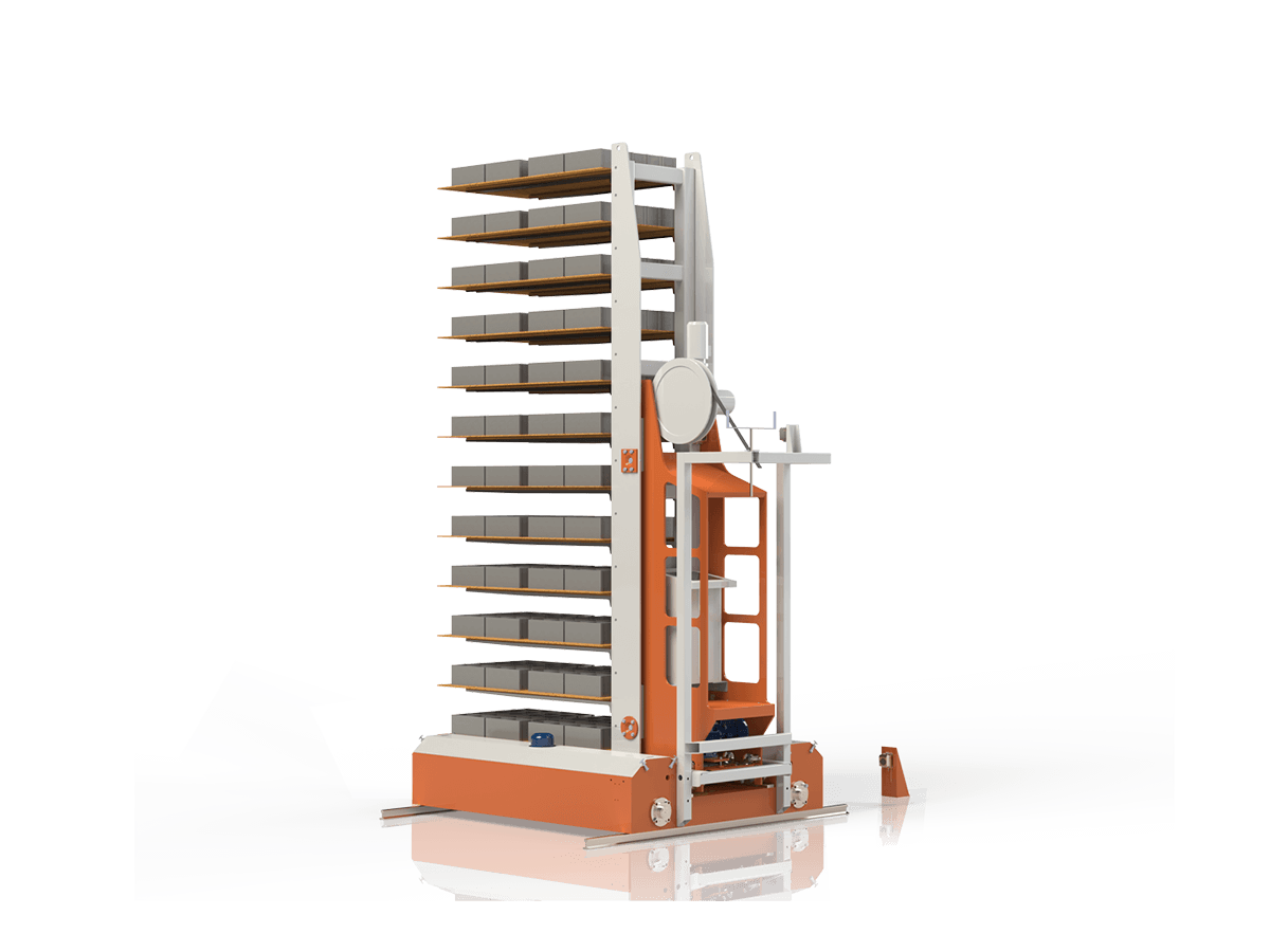 Composto da due gruppi (Master e Lem) controllati dal quadro di comando centralizzato, è installato a servizio degli impianti automatici per la movimentazione dei prodotti freschi/secchi nelle celle di stagionatura manufatti.