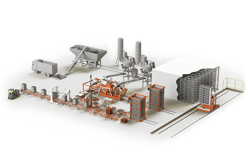 Impianto completamente automatico per la produzione di manufatti in calcestruzzo. Top di gamma della produzione Form Impianti