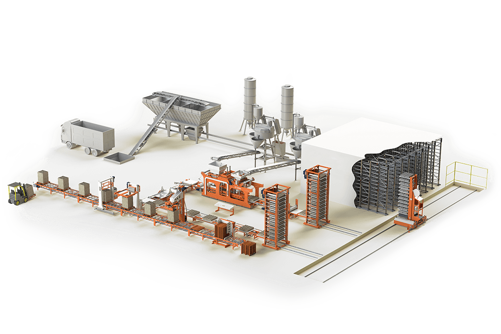 Impianto completamente automatico per la produzione di manufatti in calcestruzzo.